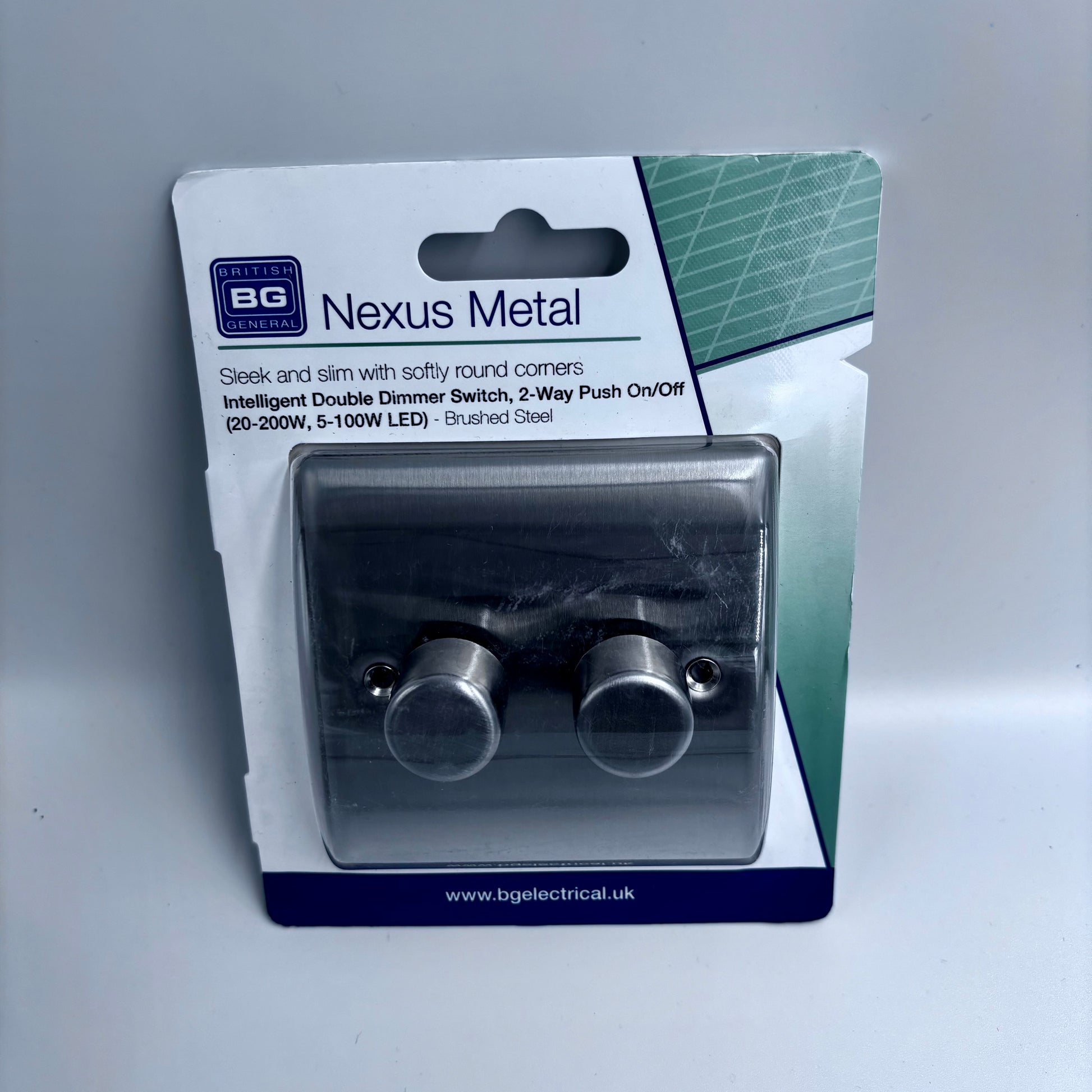 BRITISH GENERAL NEXUS METAL 2-GANG 2-WAY LED DIMMER SWITCH BRUSHED STEEL (NBS82)