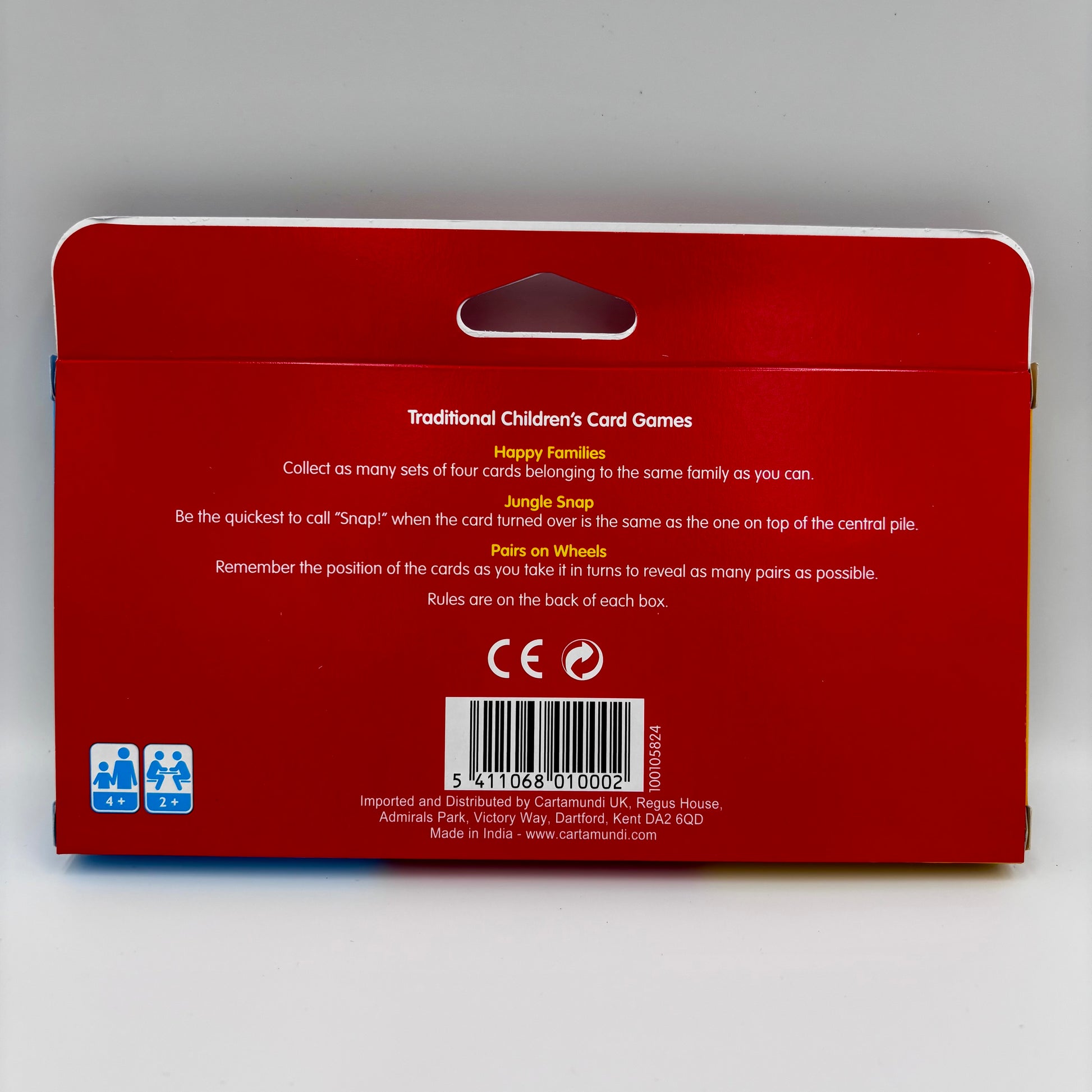 The Children's 3 Card Game Pack by Cartamundi includes Jungle Snap, Pairs on Wheels, and Happy Families. These card games are designed for children and offer a fun and interactive way to play. With colourful and engaging designs, these games are sure to provide hours of entertainment for kids of all ages. Perfect for parties, family game nights, or simply for a leisurely game at home, this pack of card games is a great addition to any child's toy collection.